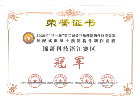 浙江省“建工杯”競(jìng)賽構(gòu)件制作團(tuán)體三等獎(jiǎng)
