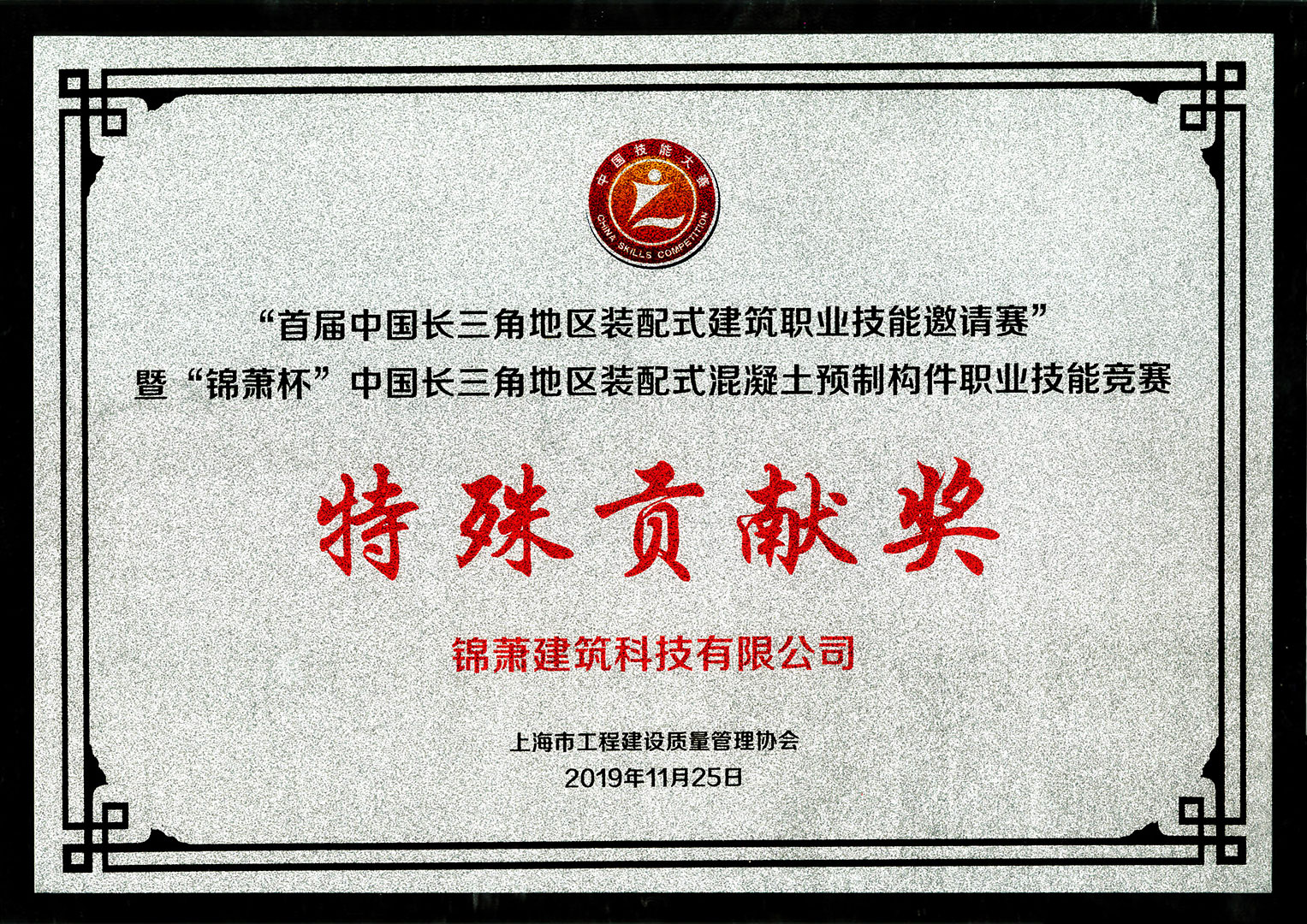 錦蕭杯中國長三角地區(qū)裝配式混凝土預(yù)制構(gòu)件職業(yè)技能競賽特殊貢獻(xiàn)獎(jiǎng)