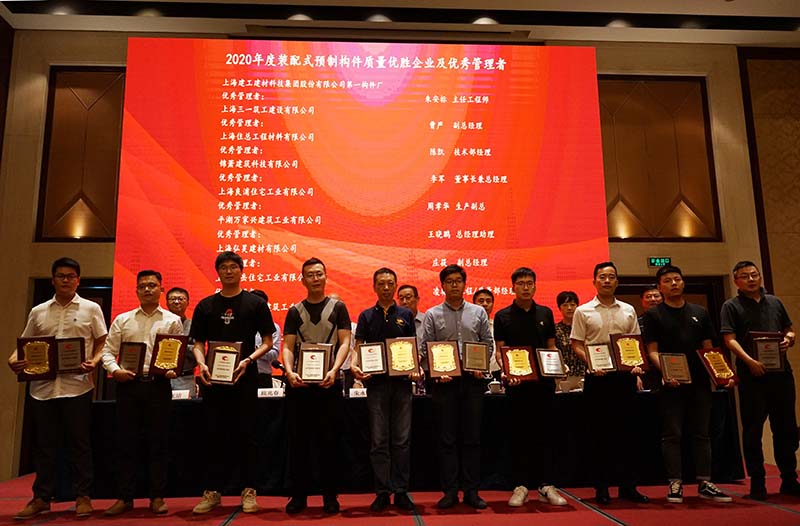 本次會議進行了預(yù)制構(gòu)件專業(yè)委員會2020年度頒獎。表彰了15家“2020年度裝配式預(yù)制構(gòu)件質(zhì)量優(yōu)勝企業(yè)”及其優(yōu)秀管理者、兩家 “2020年度隧道管片構(gòu)件質(zhì)量優(yōu)勝企業(yè)”及其優(yōu)秀管理者、6家企業(yè)18名“2020年度裝配式構(gòu)件企業(yè)優(yōu)秀質(zhì)量操作者” 。