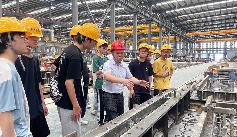 隨后,師生一行在相關(guān)負(fù)責(zé)人的陪同下實(shí)地參觀了公司生產(chǎn)車間,現(xiàn)場(chǎng)感受裝配式預(yù)制構(gòu)件的生產(chǎn)工藝和流程,公司技術(shù)人員對(duì)學(xué)生們提出的疑惑耐心地進(jìn)行了一一解答。