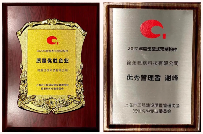 錦蕭科技榮居榜首,被評(píng)為“2022年度裝配式預(yù)制構(gòu)件質(zhì)量?jī)?yōu)勝企業(yè)”,并授予公司副總經(jīng)理謝峰“優(yōu)秀管理者”稱號(hào)。